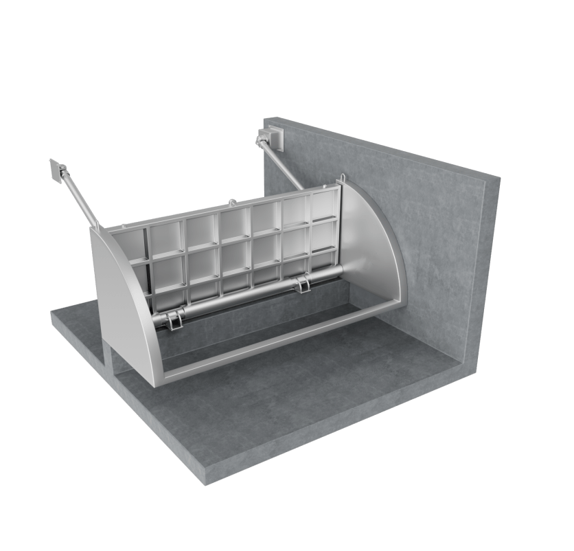 框架和堰門板均由耐腐蝕材料制成。它們配備的支撐鉸鏈由免維護的聚酰胺制成。底部和側(cè)面的特殊唇形密封可確保堰門關閉狀態(tài)時密封(符合DIN 19569-4標準的密封性要求)。